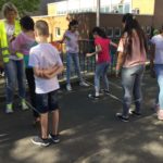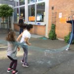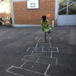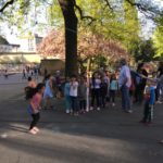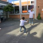 - Am 19. April haben wir im Rahmen der Eppinghofer Werkstattwoche alte Schulhofspiele gespielt. Zuerst durften die 1. und 2. Klassen auf dem Schulhof spielen, danach waren die 3. und 4. Klassen dran. Wir haben zum Beispiel Hüpfkästchen, Seilspringen und Gummitwist gespielt, aber auch Kreisspiele, wie „Knotenmutter“, „Fischer, Fischer, wie tief ist das Wasser“ oder „Ochs am Berge“. Das Wetter hat sich an diesem Tag von seiner besten Seite gezeigt, es war schön sonnig und warm. Leider hatten wir nicht genug Zeit um alle Spiele auszuprobieren, denn nach ungefähr 5-7 Minuten haben wir die Spielestationen gewechselt.