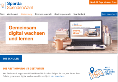 In diesem Jahr nahm unsere Schule an der “Sparda Spendenwahl 2021” teil und hat es auf Anhieb in die TOP 50 geschafft. Somit werden eine finanzielle Unterstützung in Höhe von 1000€ für unsere zukünftig digitalen Klassenräume erhalten.
