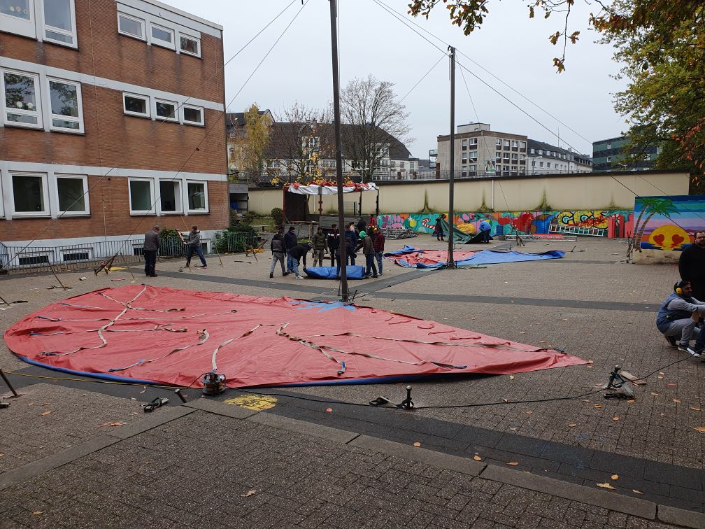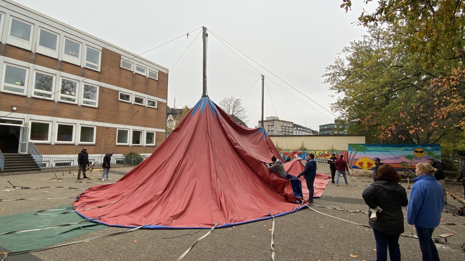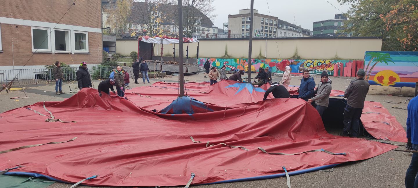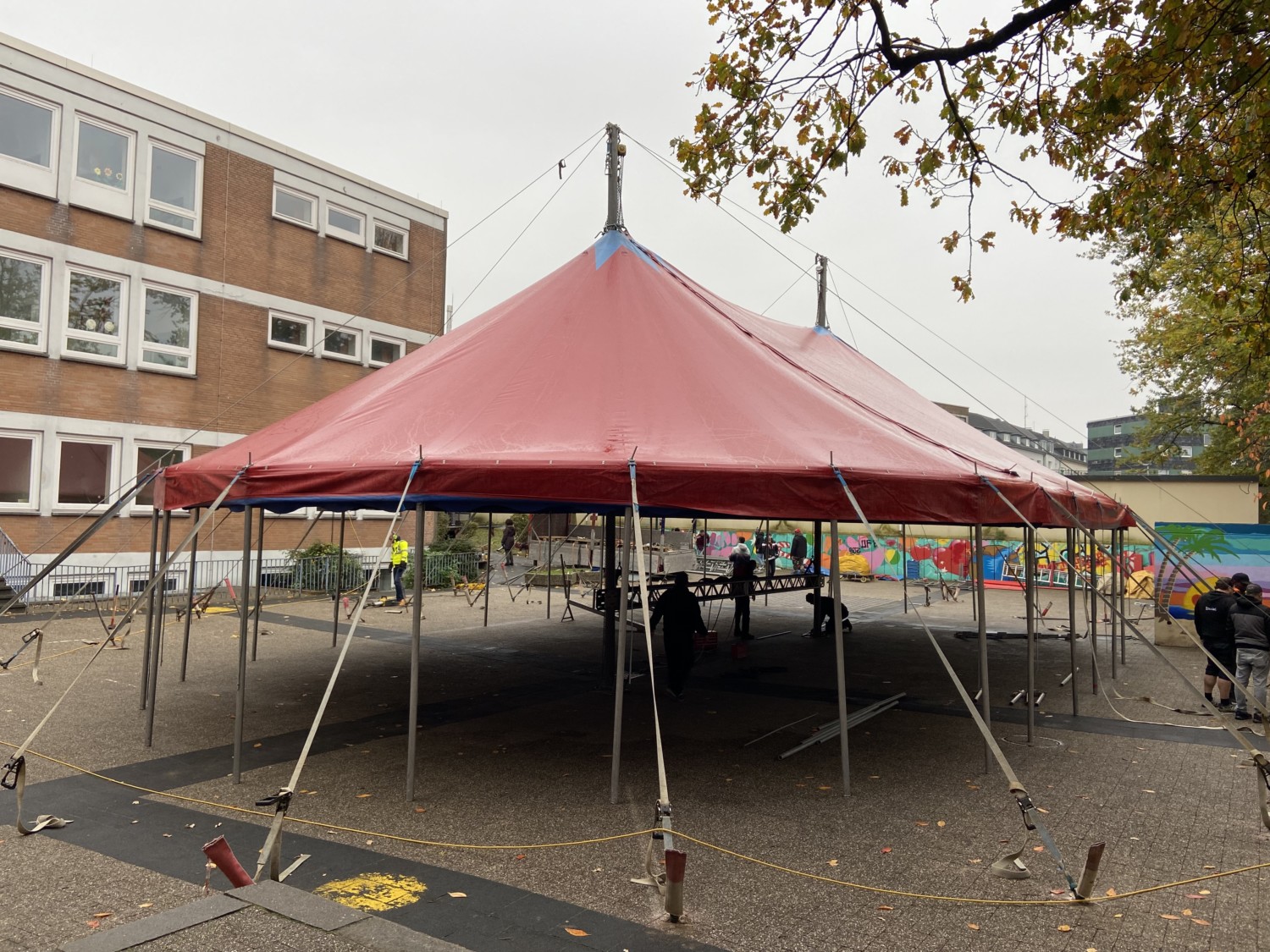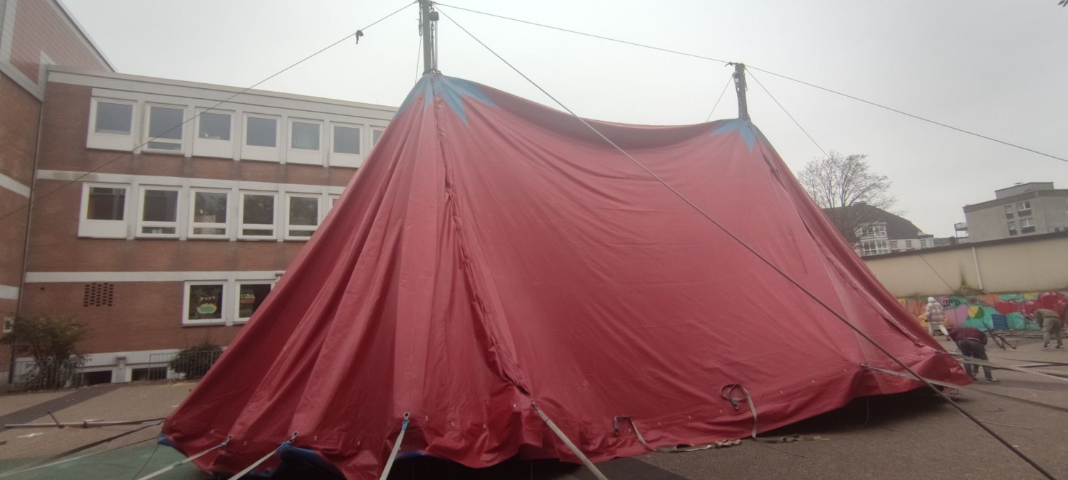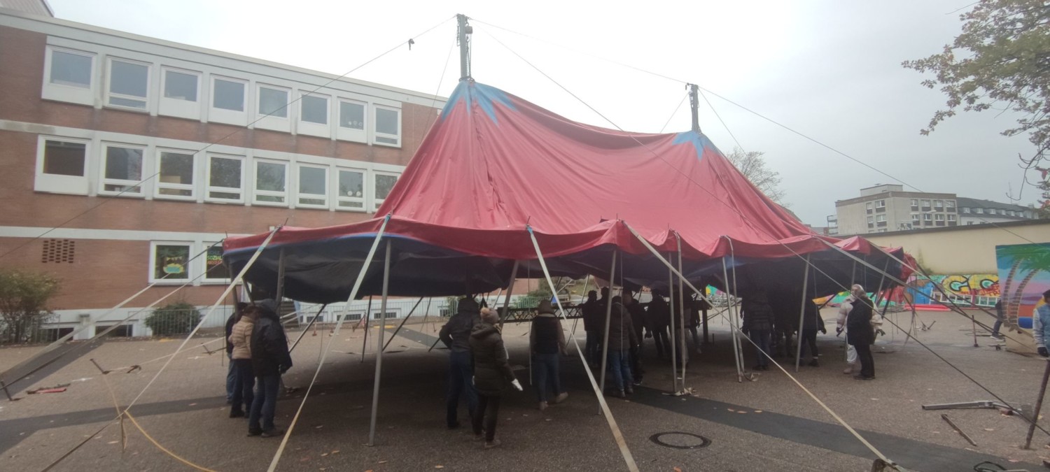 Unter der Leitung des Zirkus “ZappZarap” wurde heute mit ganz vielen fleißigen Helferinnen und Helfern das Zirkuszelt durch uns als Schulgemeinschaft aufgebaut. Es gab viel zu tun. Es war meistens kalt, manchmal nass, zwischendurch sehr lecker, aber vor allem, es hat immer Spaß gemacht gemeinsam dieses Zirkuszelt wachsen zu sehen.
