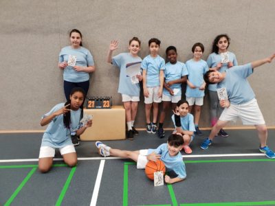 Die Jungs und Mädchen der 3. und 4. Klassen starteten etwas nervös im ersten Spiel gegen die Schildbergschule. Im Korbwurf-Wettkampf im Anschluss an jedes Spiel konnten wir uns dann aber durchsetzen und gewannen danach die weiteren Spiele gegen die Schule vom Oemberg und gegen die Astrid-Lindgren-Schule. In der langen Pause daraufhin von zwei Spielen verließen uns leider etwas die Kräfte und die Konzentration, sodass wir im letzten Spiel gegen die Pestalozzischule unsere erste Niederlage hinnehmen mussten.
